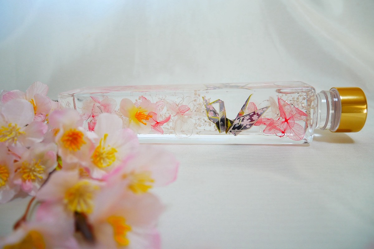和柄模様のオリエステルおりがみを入れて、和テイストなハーバリウムを作りましょう。