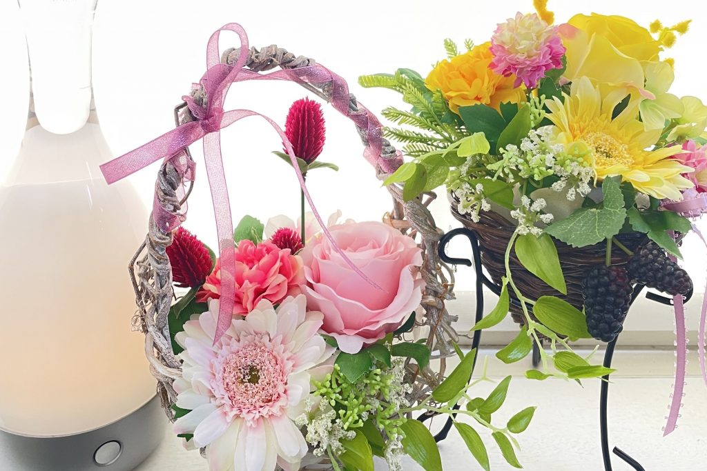 横浜北部・川崎エリア イベント花籠のアーティシャルアレンジメント