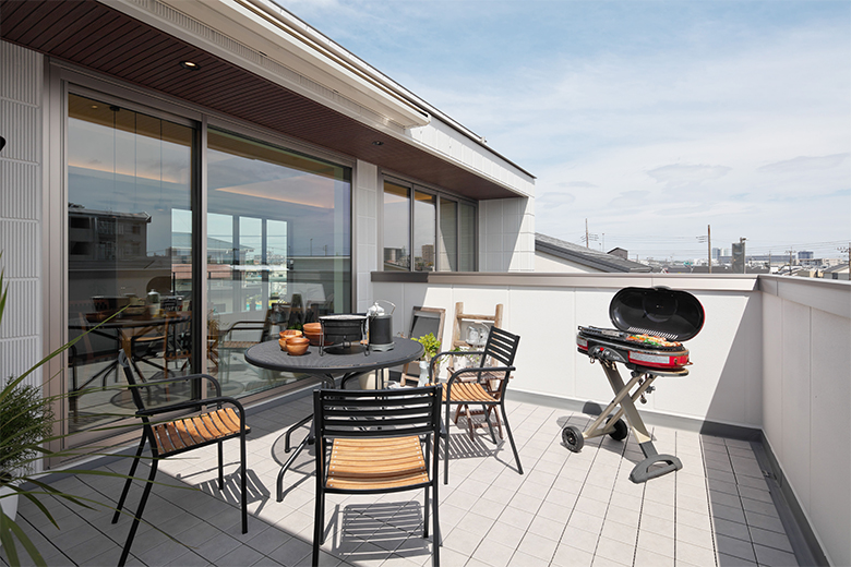 - 開放的な青空の下で家族でゆっくり過ごせる贅沢な屋上の青空リビング