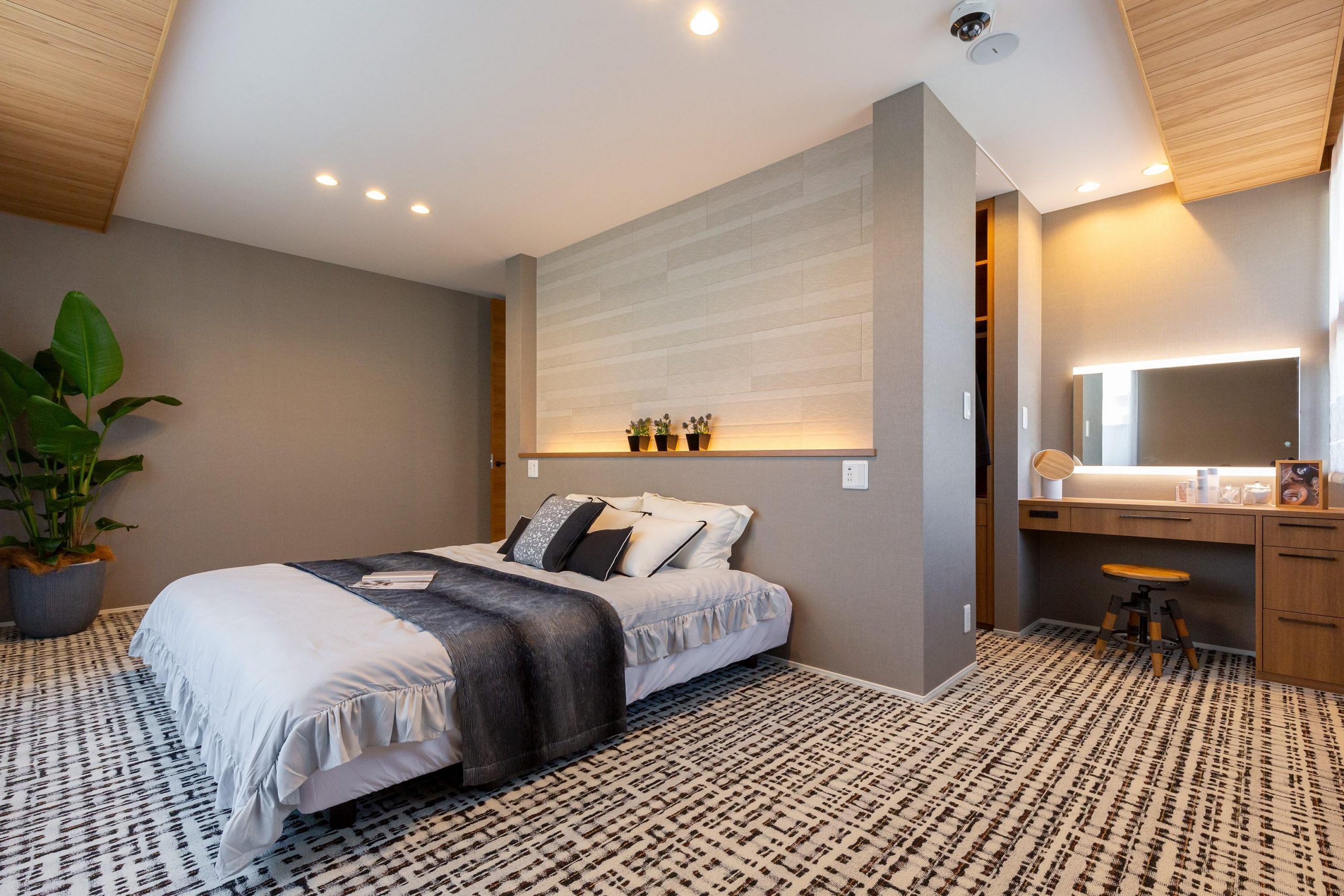 バニティーコーナーと直結したウォークインクローゼットは両側からの二方向動線です。