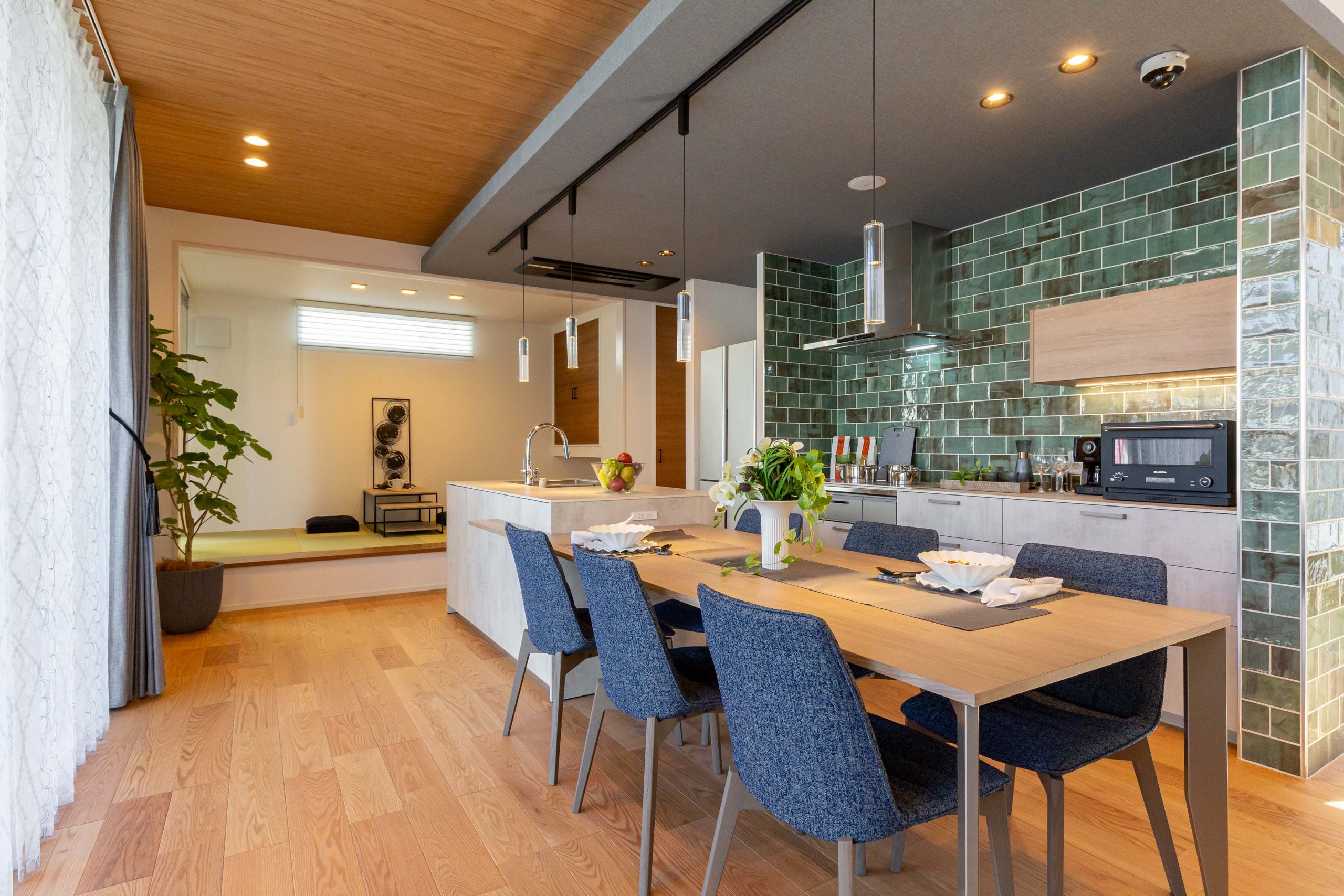 キッチンを中心に、ダイニング、インナーテラス、小上がりの和室がつながります。