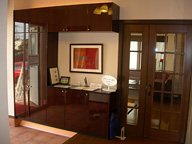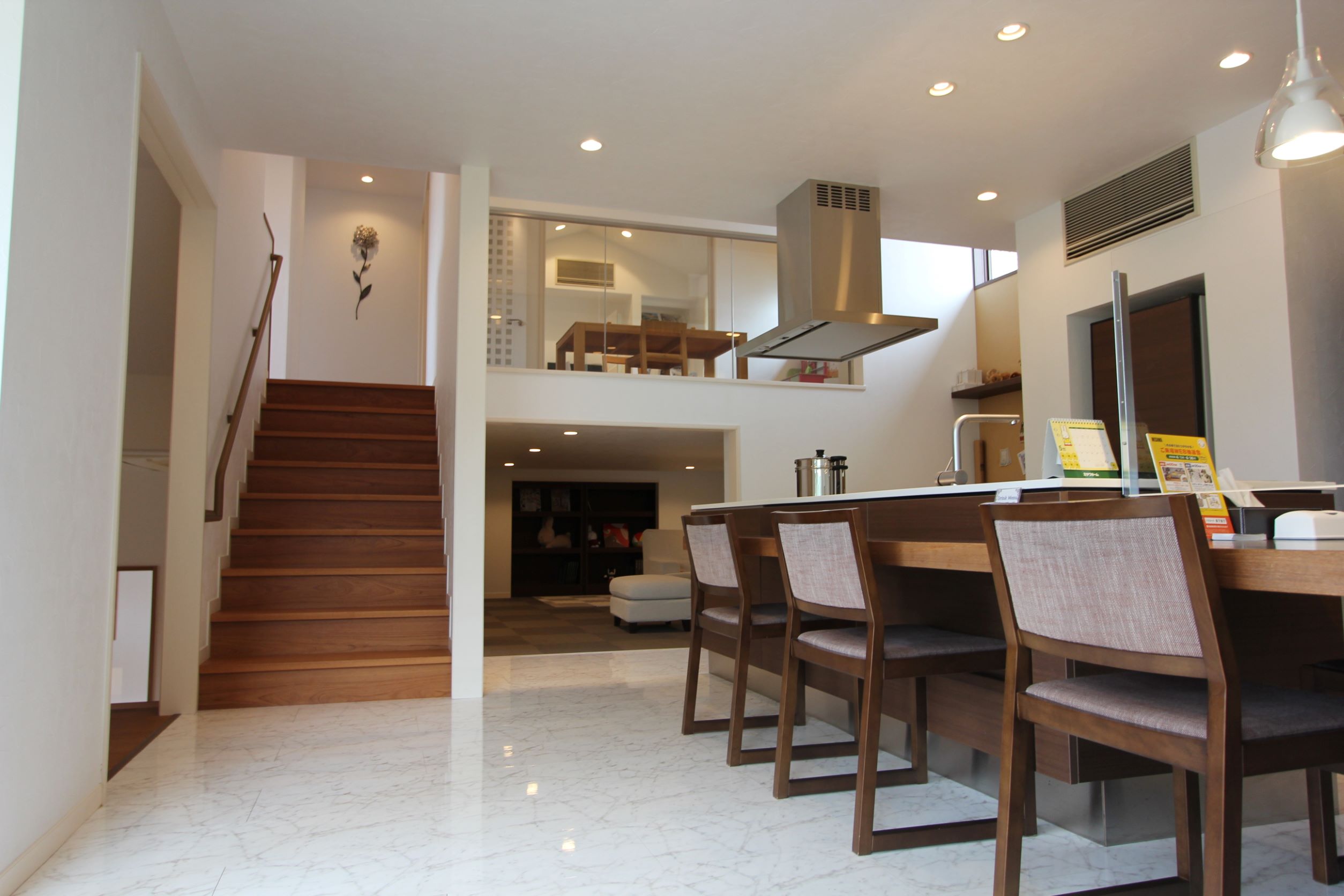 - 1階はウォールナットで落ち着いた空間