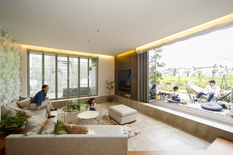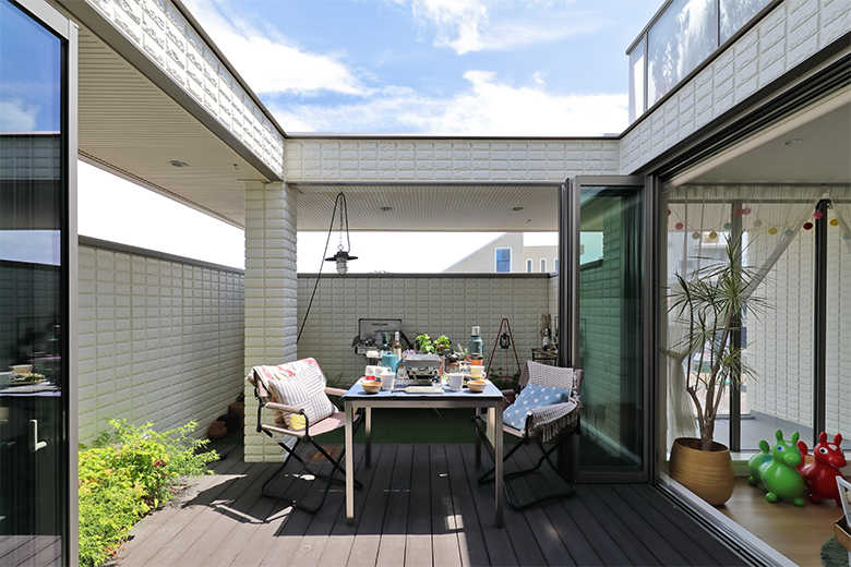 外とつながるアウトドア空間で「おうちBBQ」や「おうちキャンプ」など家族が楽しくつながるLDKです。