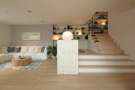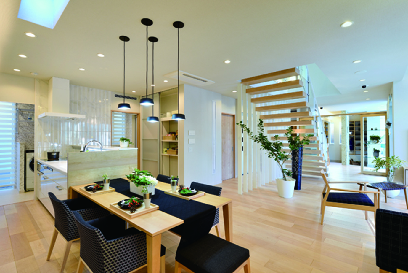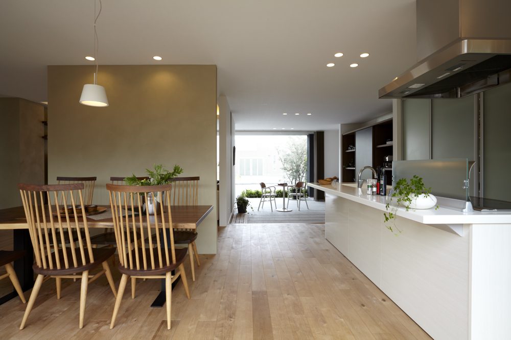 湘南の太陽の恵みと爽やかな風、木のぬくもりを感じながらダイニングへと続く大空間では、どこにいても温度差を感じることのない快適な住まい心地を体感していただけます。