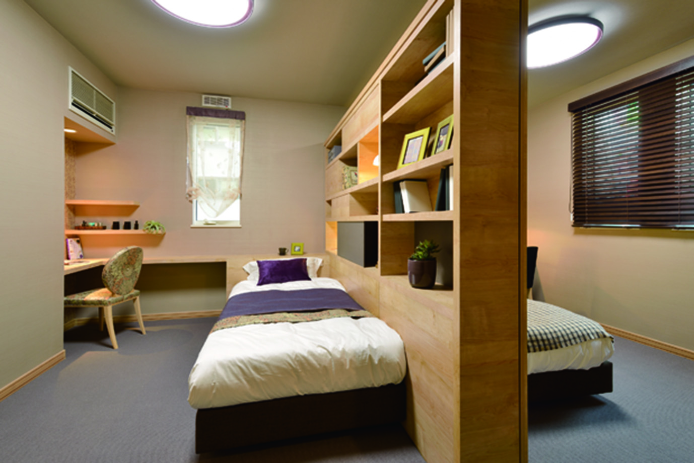 寝室としての寛ぎはもちろん、就寝前のひとときを楽しく演出する空間