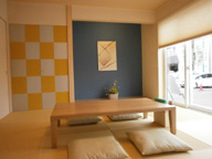 2方向から出入り可能な和室。使い勝手のよさはもちろん、市松模様の襖など、デザインにもこだわりました。