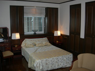 落ち着いたダークブラウンに色鮮やかなファブリックを合わせた主寝室。 窓辺からは柔らかい光が差し込みます。