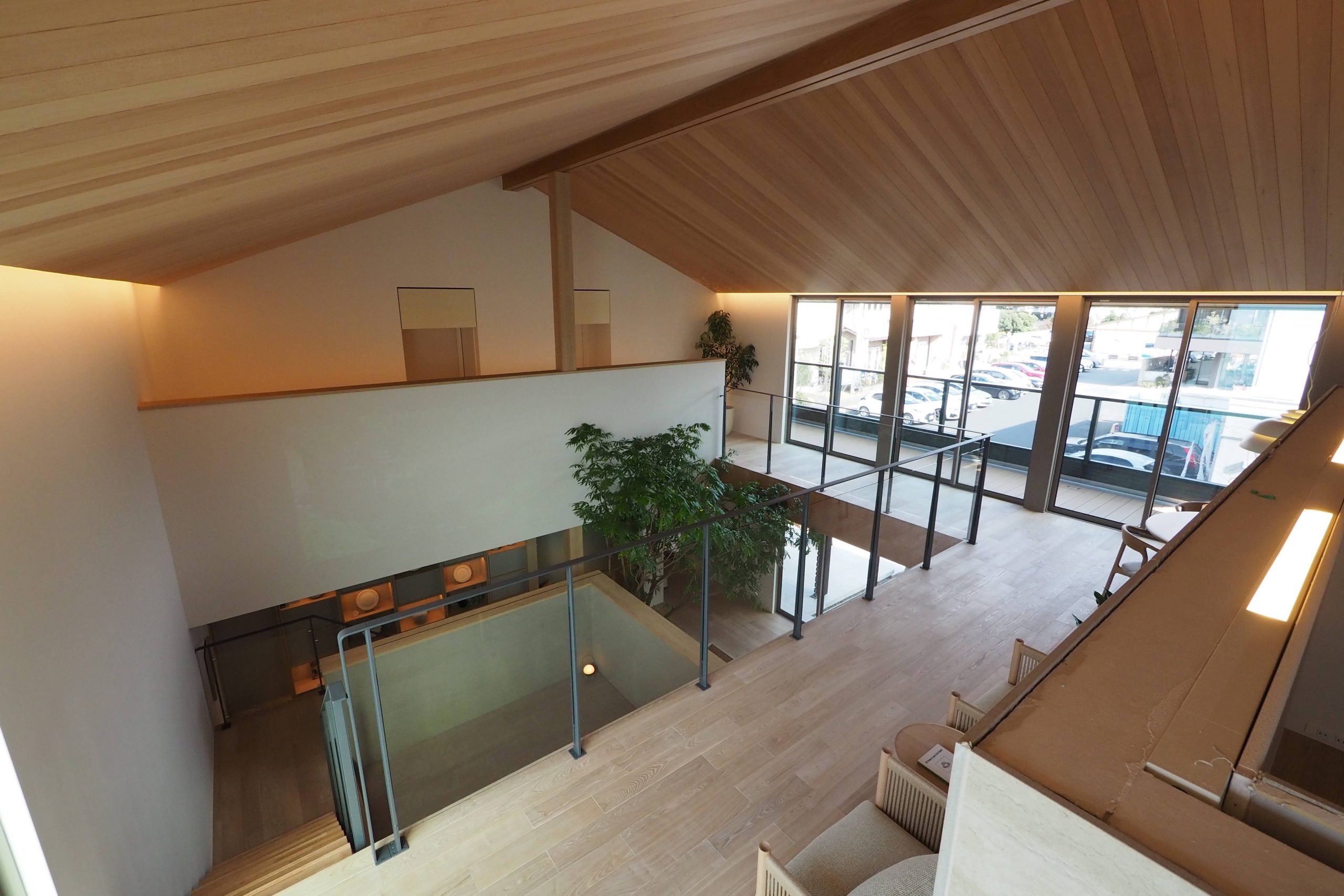 - 大開口・吹抜け・勾配天井を採用した、立体的な大空間
