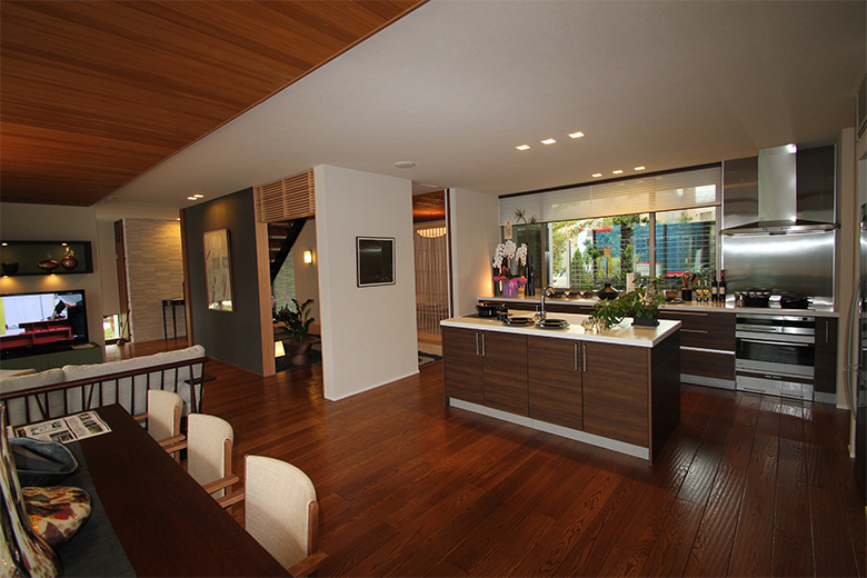 ウォールナット材をふんだんに活用した高級感のある贅沢空間