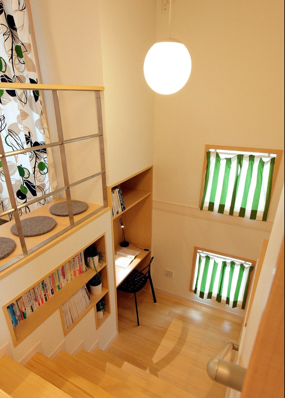 リビング・ダイニング・キッチンと2階をつなぐ会話の接点でコミュニケーションの橋渡し場所。
