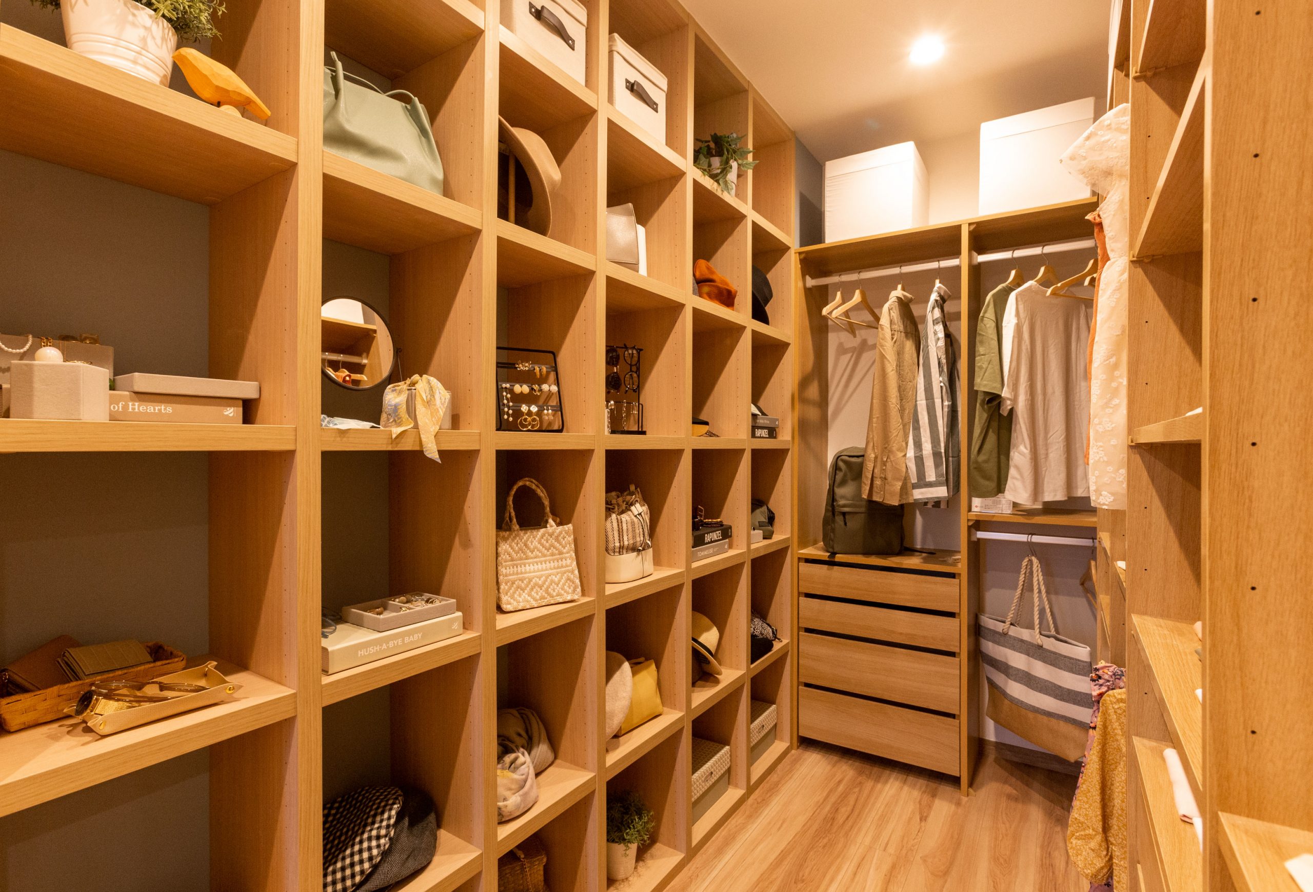 家族みんなの衣類や小物を収納できるブティッククローゼットは、寝室・ホールの2方向から出入りが可能