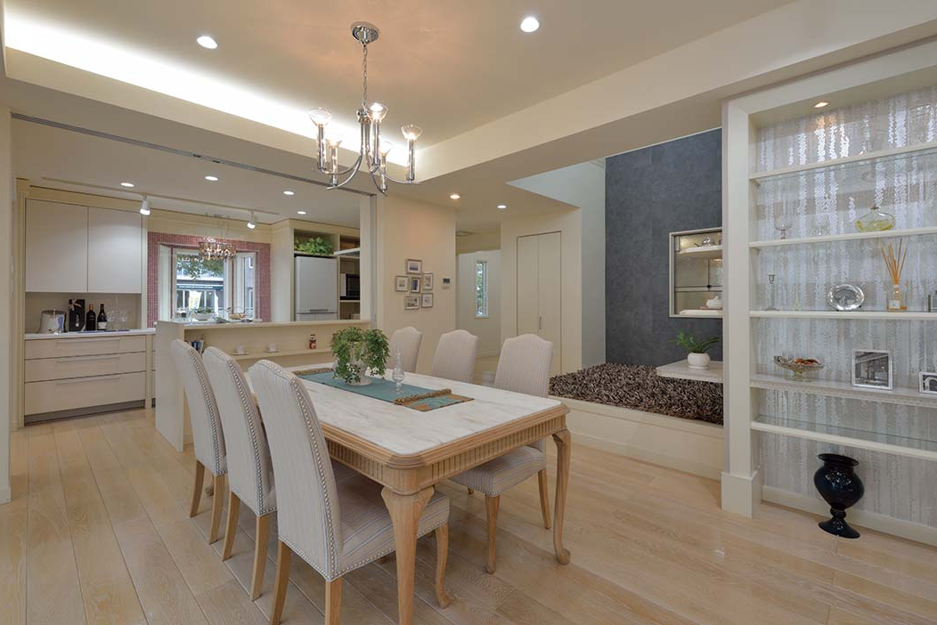 白を基調にした明るいインテリア。家族が自然と集う、居心地のよい空間