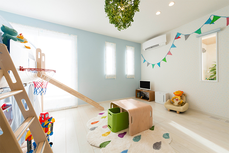 遊び心あふれる子ども部屋。将来は2部屋に分離も可能な間取りとなっています。