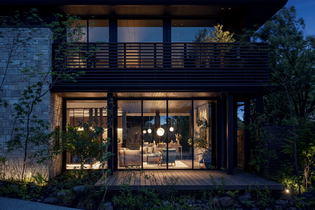 新百合ヶ丘の閑静な住宅街に”一軒の森”が佇んでいる。吹抜階段から、柔らかに降りそそぐ陽光が心地よい。まるで枝葉のように外に伸びてゆく、深みのある木天井。その姿を追いかけた視線の先には大開口で内と外がつながる透き通るような大空間が広がっていた。上質なインテリアに彩られた、大人にふさわしい木造住宅。五感を揺さぶる美しい住まいづくりをここから。
