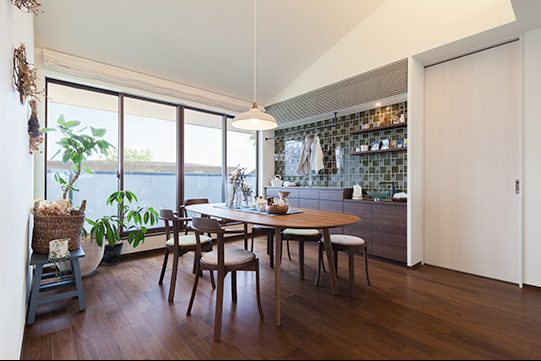 外のテラスともつながりを持たせることで、家の中にいながらも自然や四季を感じることができます。
