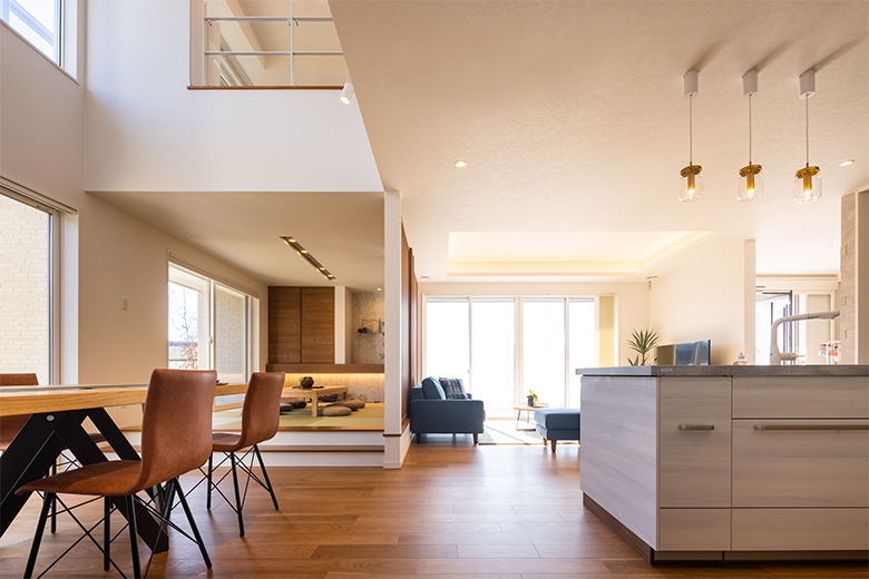 - ビッグフレーム構法ならではの大空間・大開口と自由に選べる天井高