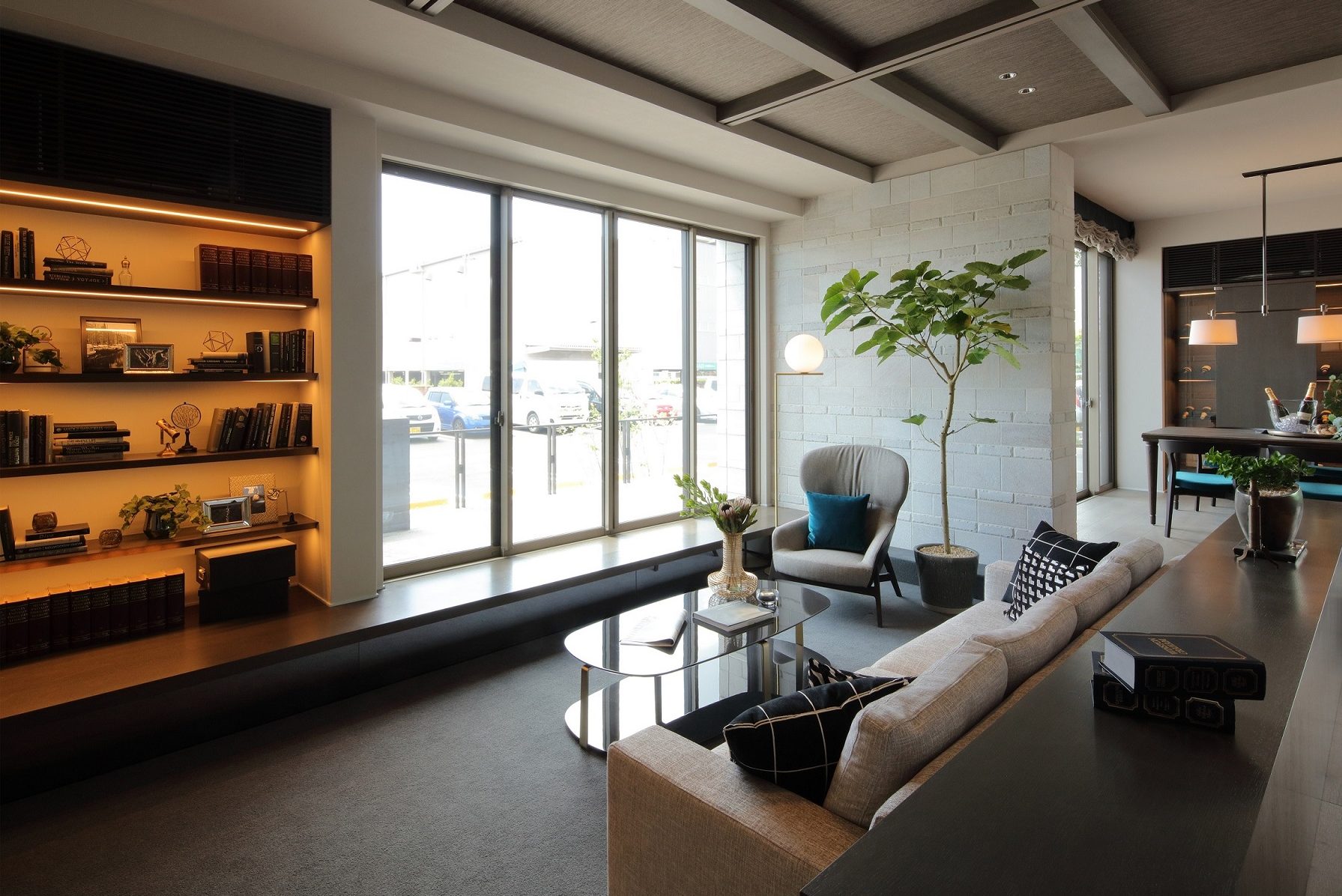 1階天井高2,740mmを採用した展示場でございます。高級感のある親世帯の1階は、ゆっくりと時間が流れ、大切なご友人を招く大空間のフロアです。2階の子世帯は、奥様に大好評の家事動線・インテリアを設えてあり、遊び心溢れるアクセントクロス・個性的な家具が見どころです。ワンランク上の快適を生み出す積水ハウスの先進技術を是非ご覧くださいませ。