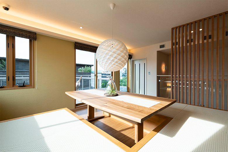 3階にもうけた光あふれる親世帯の畳ダイニング。