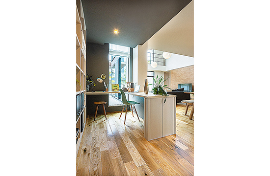 ダイニングの横に配置したスタディスペースは、お子様が宿題をしたり、また、ご主人や奥様のワークスペースとしても活用できます。