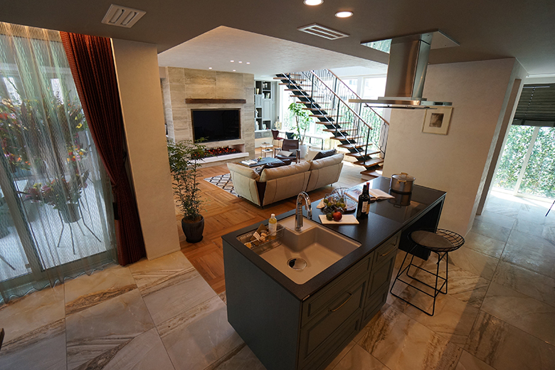 最新式パナソニック囲炉裏キッチン、スピーカー付ダウンライト等を設え、みんなが楽しく集う空間です。