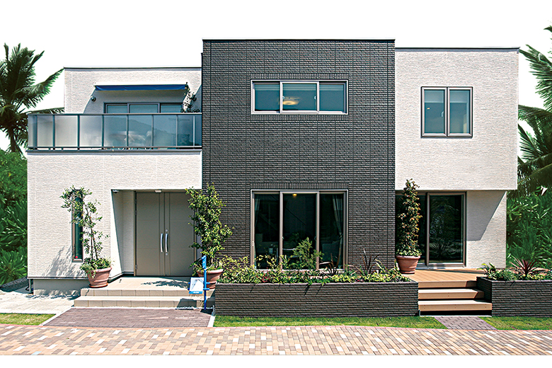 白を基調とした外壁に、存在感のある凹凸タイルを組み合わせたスタイリッシュな佇まい。室内意匠は、デザインと機能性を兼ね備えた住宅設備で美しくまとめられています。大きな窓が光と風をとりこむ大空間設計のリビングは明るく開放的。プレミアム・ブラックのキッチンがシンプルな室内にアクセントを添えています。細部まで美しさを追求したデザインコンシャス住宅「i-smart」を、ぜひ、ご覧ください。