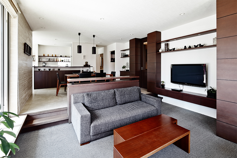 段差を設けて、落ち着きに満ちたくつろぎ空間を演出。憩いの場としておもてなしします。