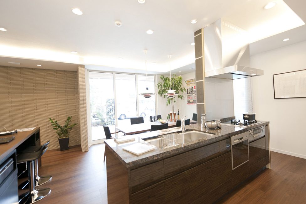 使い勝手の良い家事動線、パントリーやミセスコーナーの配置などの奥様の視点に立ったプランニング。天然御影石のキッチンカウンターや天井高2.7mなど、住友不動産ハウジングのハイグレードなマンション室内装を戸建て住宅に採用。さらに、地震に強い2×4独自の耐震&制震技術をプラス。