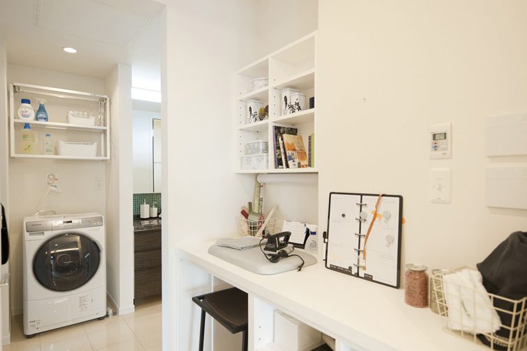 キッチンから家事スペース、洗面所までスムーズに繋がる家事動線。家事をてきぱきこなせる効率的なスペース。