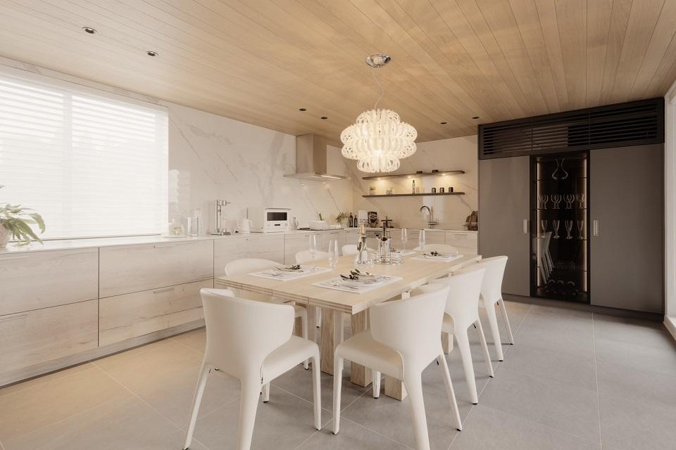 ALCコンクリート・へーベルに重量鉄骨を組み合わせた家づくり。開放感のあるLDKに外との繋がりを感じられる「アウトドアリビング」で新たな家族団らんの場をご提供致します。