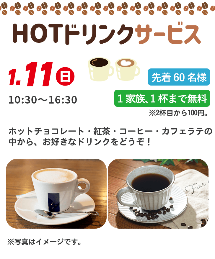- イベント内容・詳細についてはお客様の混雑状況及び天候等、諸事情により変更や中止となる場合がございます。