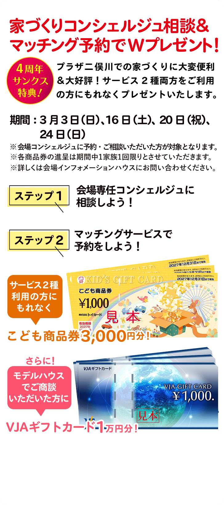 - イベントはハウスメーカーとのご商談及びご契約いただいた方を優先させていただく場合がございます。