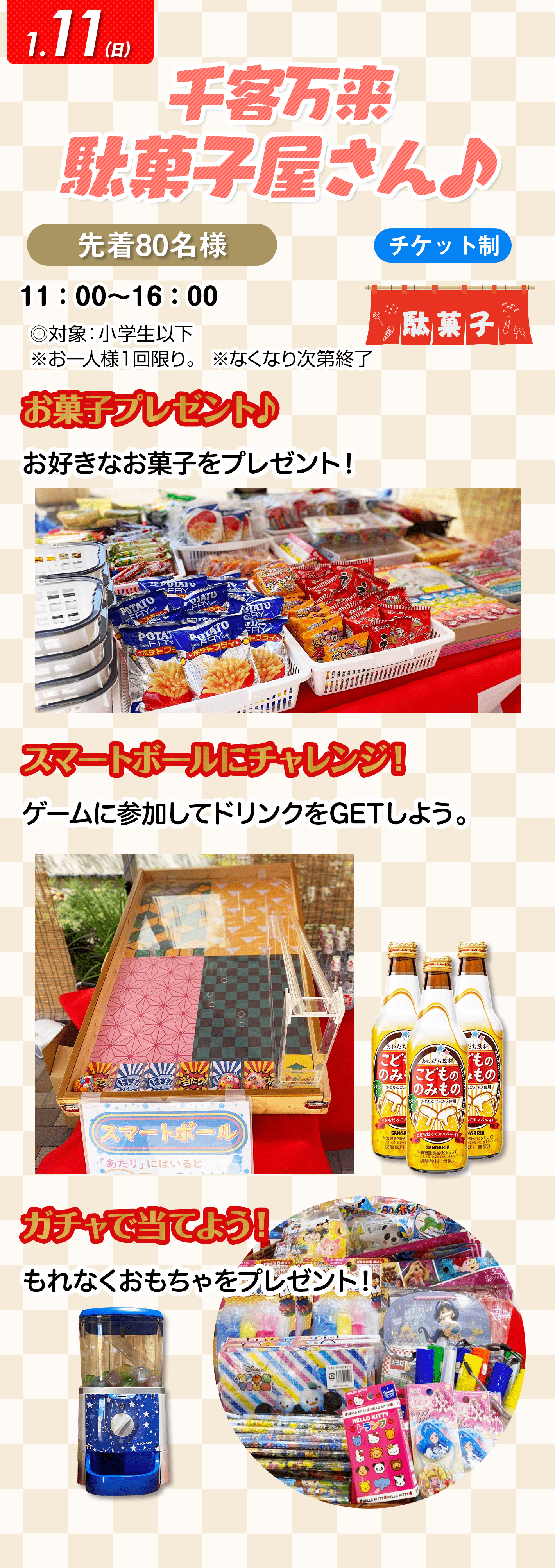 ※お客様の混雑状況及び天候等の諸事情により急遽イベントの内容を変更・中止する場合がございます。
