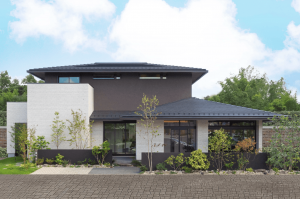 外観は、深い軒が落ち着きを感じさせる、飽きのこないシンプルなデザインが特徴です。