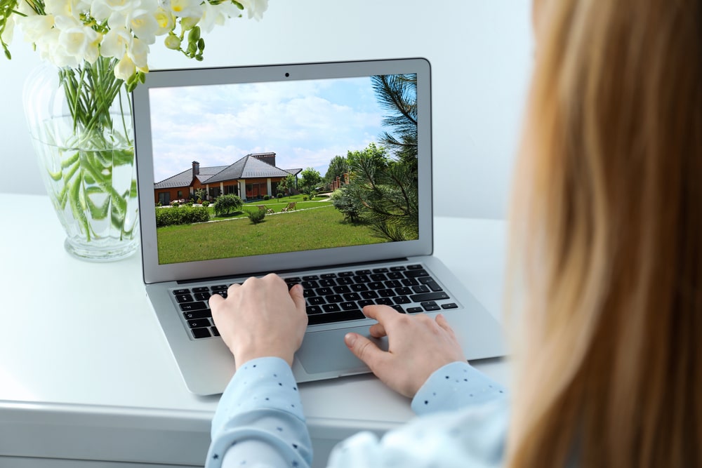 パソコンの画面に映る大きな家