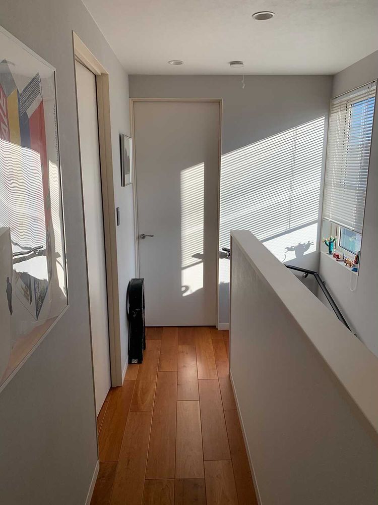 3階は夫婦の寝室と子ども部屋があります。狭いスペースの中でも家族が朝起きてリビングに向かうときに日差しを受けながら開放的な気分になれるように心がけました。