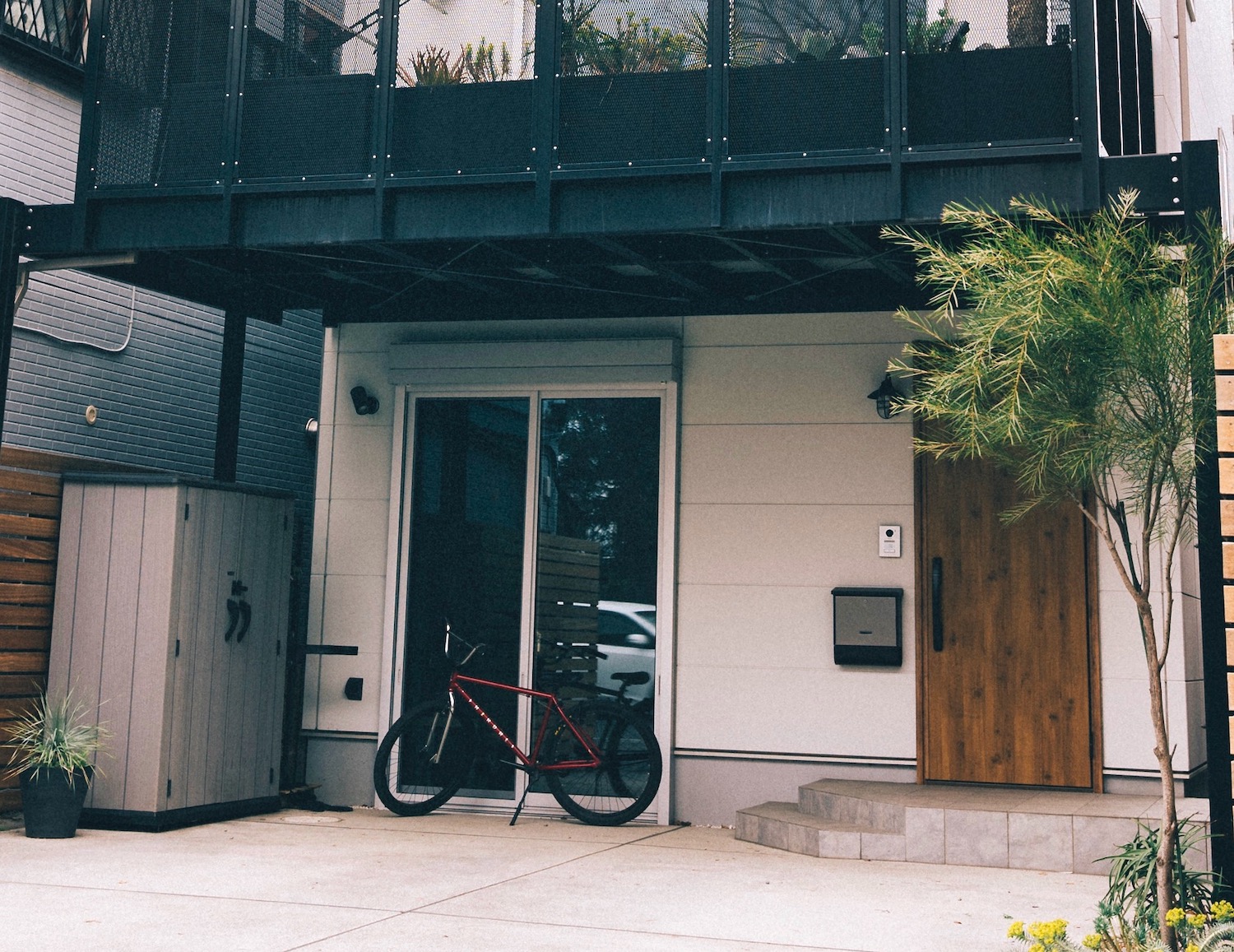 本当はもっと2階のバルコニーを奥行き広くして、その下にあたる1階に屋根付きのガレージをつくりたかったんです。でも建ぺい率の規制を超えてしまうので、諦めざるを得ませんでした。
