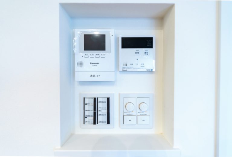 そのニッチに、照明スイッチやインターホン、給湯器のコントロールパネルなどのリモコンをまとめたものが「スイッチニッチ」。スイッチ類をまとめることで、壁の凸凹がなくなりお部屋をスッキリとした印象にすることができます。